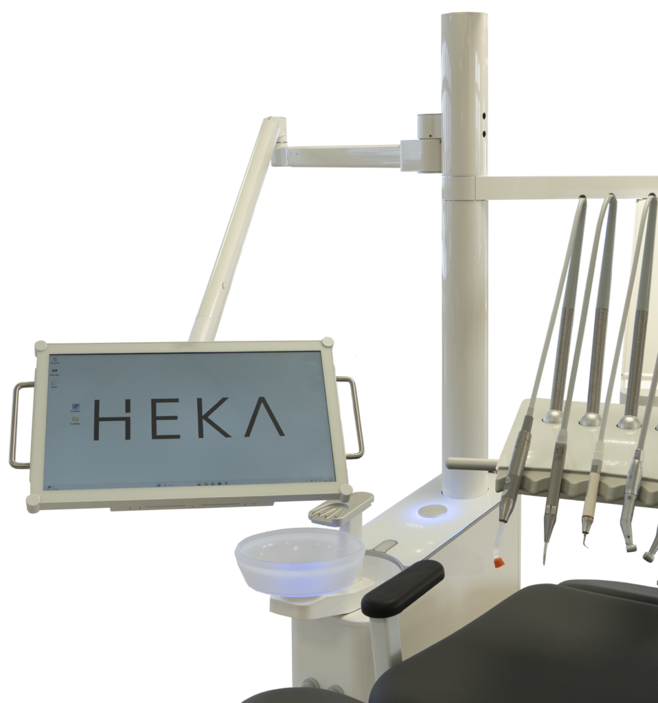 Alle Oberflächen der Einheiten sind glatt und wir haben gehärtetes Glas bei der schwarzen Version auf dem Instrumententisch und der Konsolenoberseite verwendet (*keine Konsole bei Orto-Einheiten), was die hygienischste verfügbare Oberfläche ist. Das Display und die Touch-Tasten können während der Reinigung natürlich deaktiviert werden, was die Sicherheit erhöht und die Reinigung von Oberflächen erleichtert.