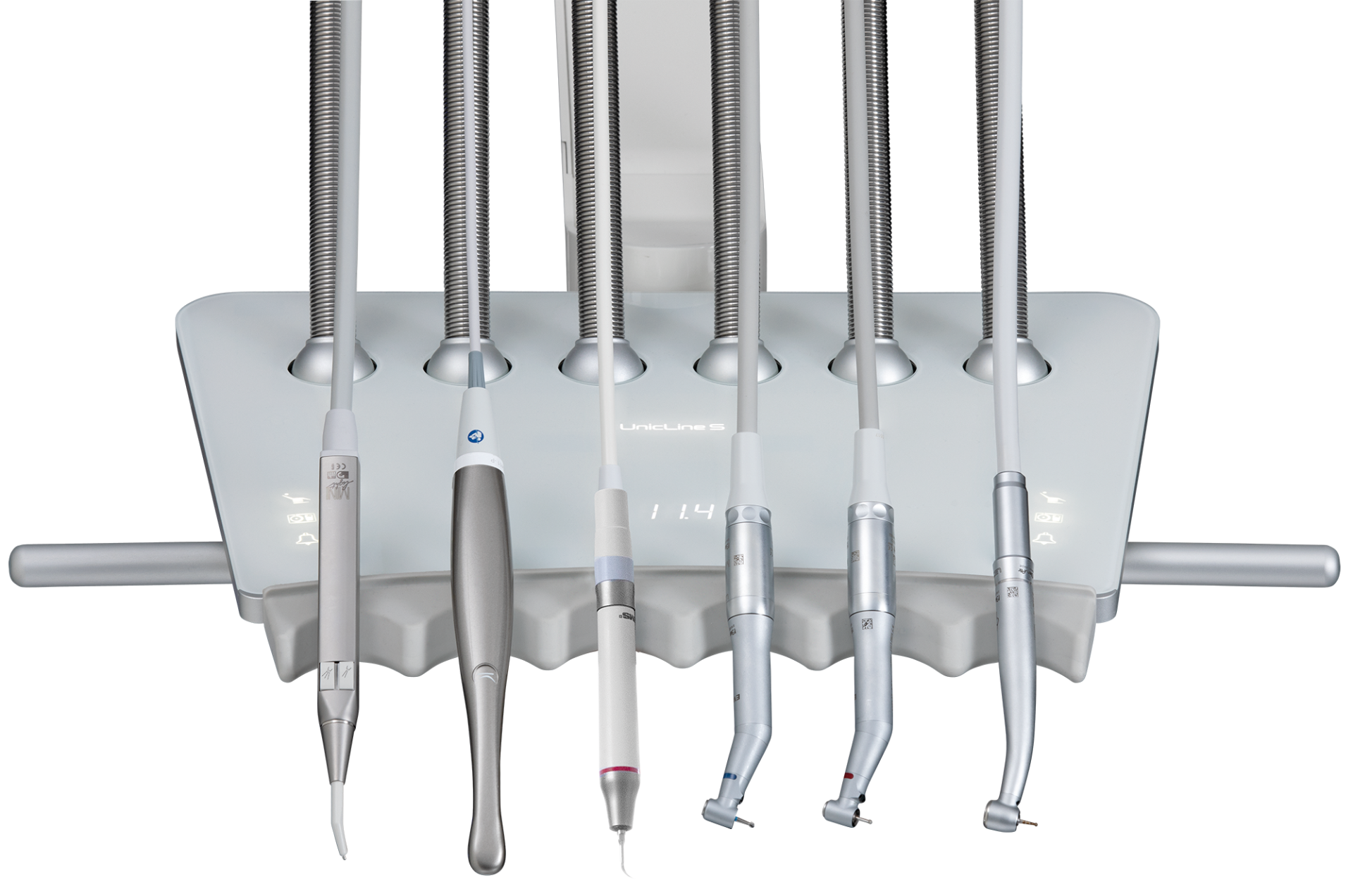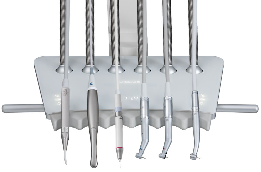 Alle Oberflächen der Einheiten sind glatt und wir haben gehärtetes Glas bei der schwarzen Version auf dem Instrumententisch und der Konsolenoberseite verwendet (*keine Konsole bei Orto-Einheiten), was die hygienischste verfügbare Oberfläche ist. Das Display und die Touch-Tasten können während der Reinigung natürlich deaktiviert werden, was die Sicherheit erhöht und die Reinigung von Oberflächen erleichtert.